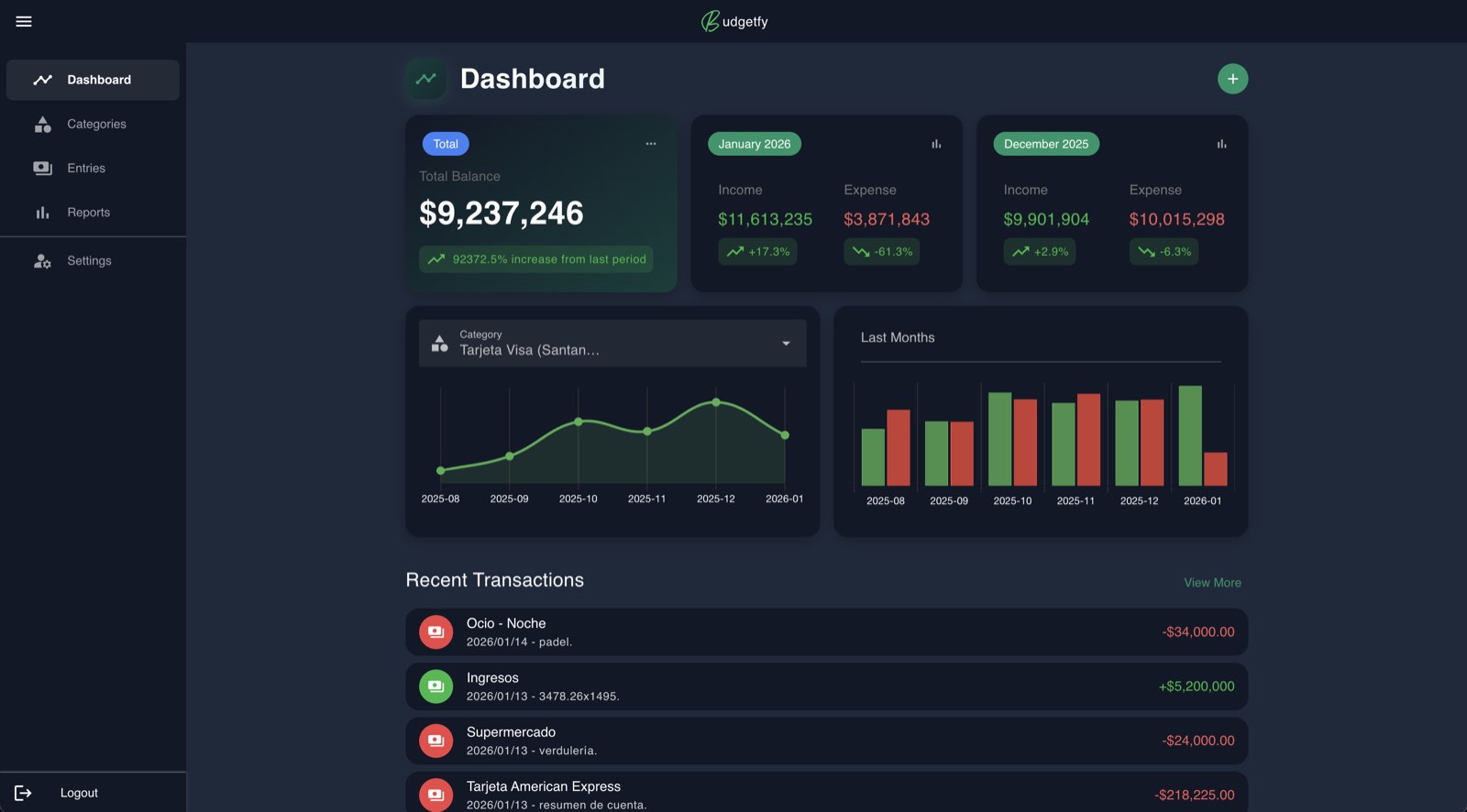 Create personalised categories, record entries, and get a clear view of your budget over time. Creá categorías personalizadas, registrá movimientos y obtené una visión clara de tu presupuesto con el tiempo.